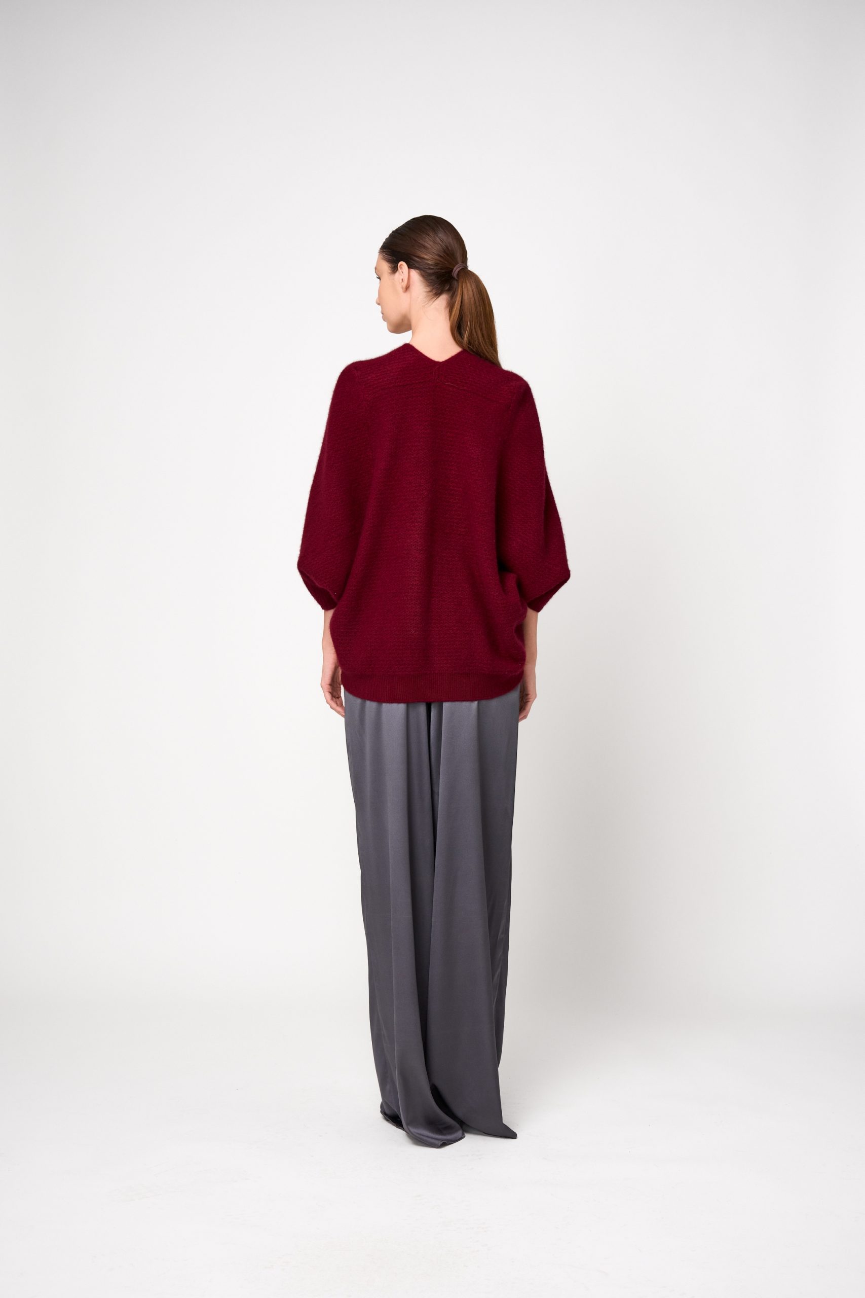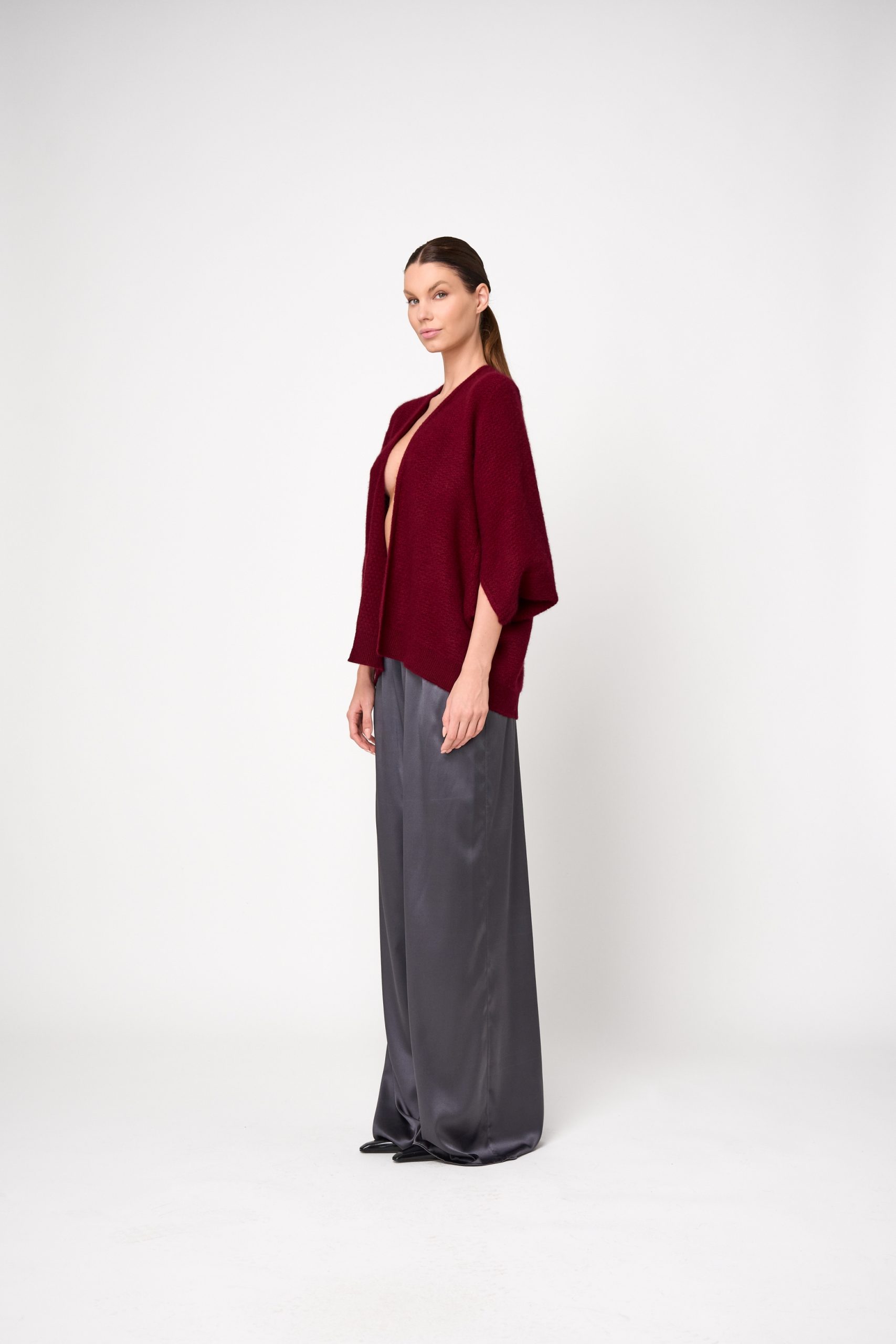 Spun from airy cashmere in a relaxed, loose-knit weave, this cardigan is perfect for layering. Its draped, design-led cut and short sleeves create an effortless silhouette, while a belt cinches it elegantly against the skin for added warmth when needed. Wear it open for a laid-back feel or styled as a top for a more defined look.