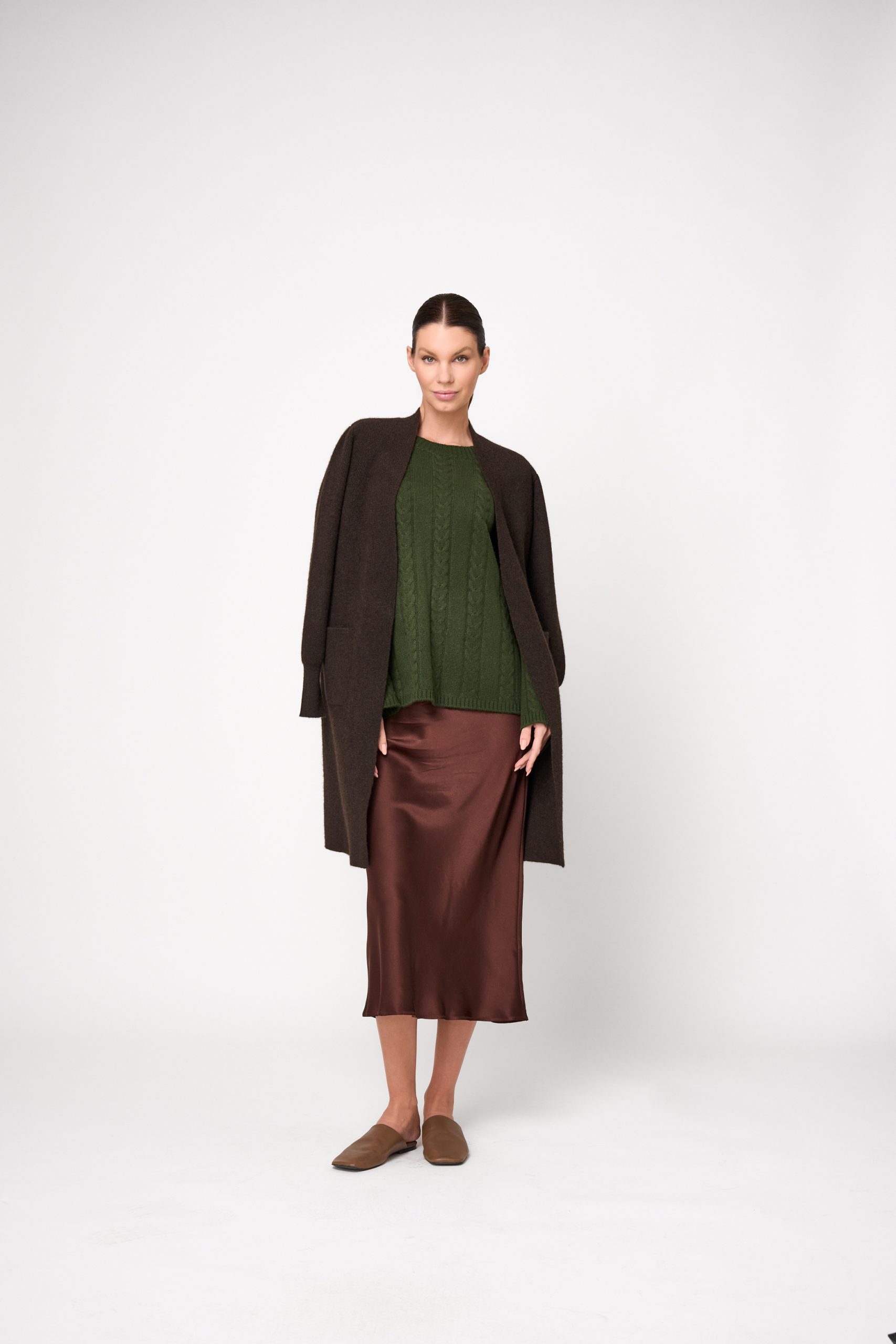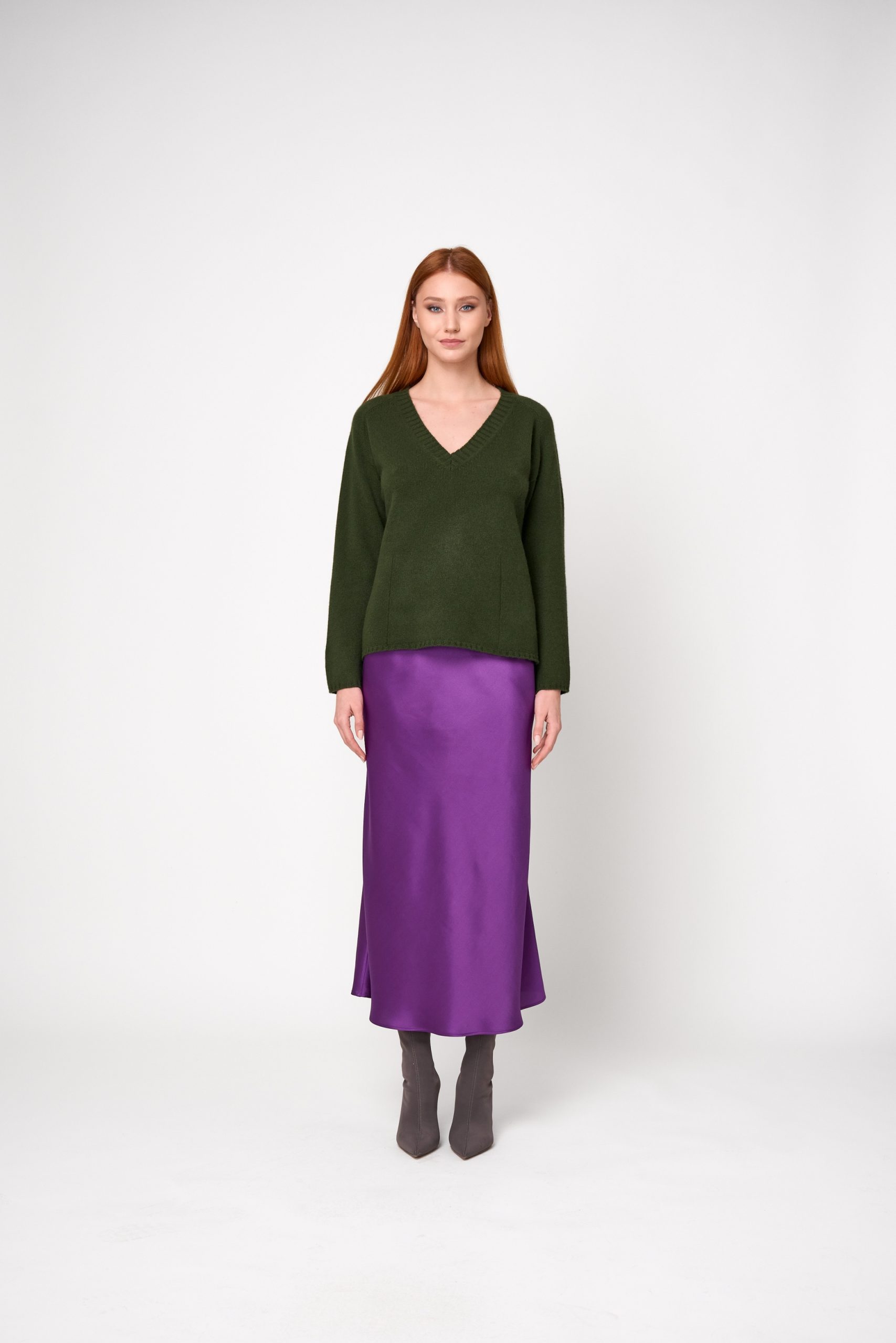 Perfect item to be worn anywhere, anytime. The bias cut is flattering for any type of body, the style is comfortable, but it still makes you look sharp and feminine. At the office or in spare time.